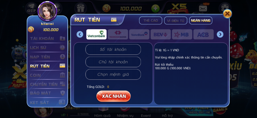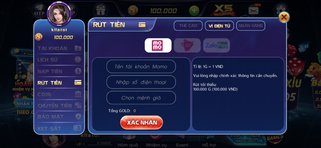 - Tài khoản game phải còn ít nhất 20K sau khi rút